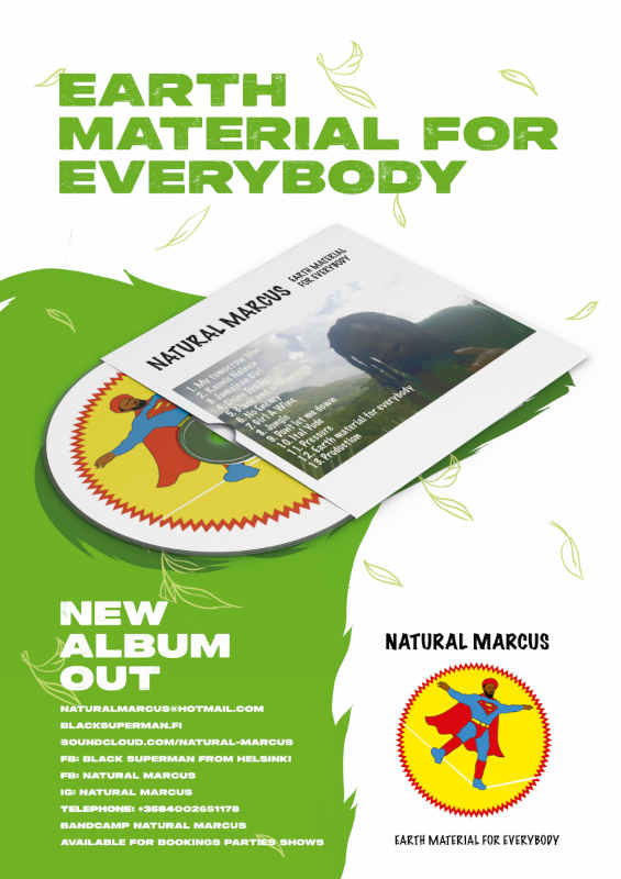 Omar Marcus aka Natural Marcus, Black Superman, Black Santa and Super Rasta originates from Guyana and is nowadays based in Finland. Marcus has been touring around South America, Caribbean and Europe. He is not only a musician but a well known acrobat. Marcus may well be the only artists who sings on a high slack line that thrills many people. The first album "Done Bless" has been a big success in Finland and worldwide. The second album "Earth Material for Everybody" has been released on CD and digitally on Bandcamp and SoundCloud. Vinyl is coming out soon. The classic sound of Natural Marcus mixes steppers and one drop reggae styles with latin beats and dancehall.